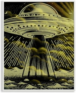 Stupell Industries Mysterious Alien UFO Fantasy & Sci-Fi Painting White Framed Art Print Wall Art, 16 X 20