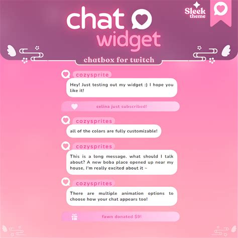 Sleek Chat Widget | Customizable Colors, Cute Chat, Minimal Theme | Pastel Pink | Chat Box And Alerts For Twitch Streams